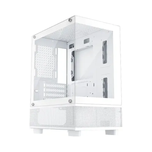 Built with gamers in mind, the 1STPLAYER Mi2A White casing supports CPU coolers up to 165mm in height and graphics cards up to 310mm in length. The power supply, located at the bottom, enhances cable management and overall system appearance.