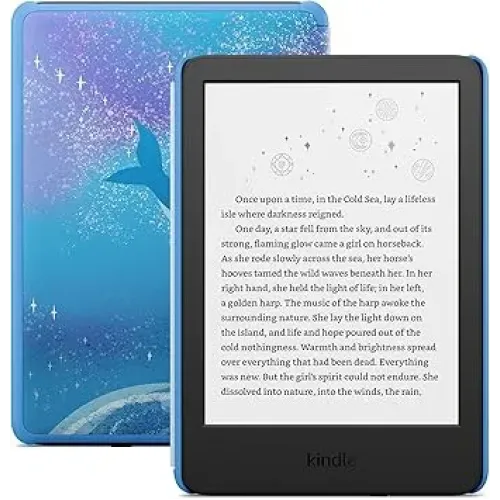 With a slim and lightweight design, this ereader is easy for kids to carry and use on the go. It comes with 16GB of internal storage, capable of storing hundreds of eBooks, from picture books to educational content. The device includes a oneyear subscription to Amazon Kids+, offering access to thousands of kidfriendly books, including titles from Disney, Marvel, and National Geographic.
