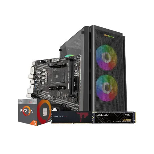Experience the best of both worlds with the AMD Ryzen 5 5600GT Budget Desktop PC, perfectly balancing high quality performance and affordability. This powerful system is designed for casual gamers and users seeking a seamless blend of performance and price. At its core is the AMD Ryzen 5 5600GT AM4 processor, equipped with integrated Radeon Graphics for best performance in gaming and multitasking. Paired with the Corsair Vengeance LPX 8GB DDR4 Desktop RAM, clocked at 3200MHz, this PC delivers durable build and premium design, ensuring smooth operation for modern applications and games. The OSCOO ON901 256GB PCIe NVMe M.2 SSD provides fast data access and short startup times, making it a musthave accessory for enhancing overall user experience. Housed in the MaxGreen 5510Mesh MidTower MATX Gaming Case with PSU, this desktop PC boasts a premium design with a mesh front panel for optimal cooling and ventilation, fitting your needs perfectly. The MSI A520MA PRO AM4 ATX motherboard offers a strong base with future upgrade capability, featuring numerous expansion slots and ports for connectivity and expansion, ensuring the system remains relevant for years to come. With the AMD Ryzen 5 5600GT Budget Desktop PC, you get a highquality, reliable system suitable for daily computing, gaming, and productivity tasks, all within a sleek, modern case that provides effective cooling and room for future upgrades.