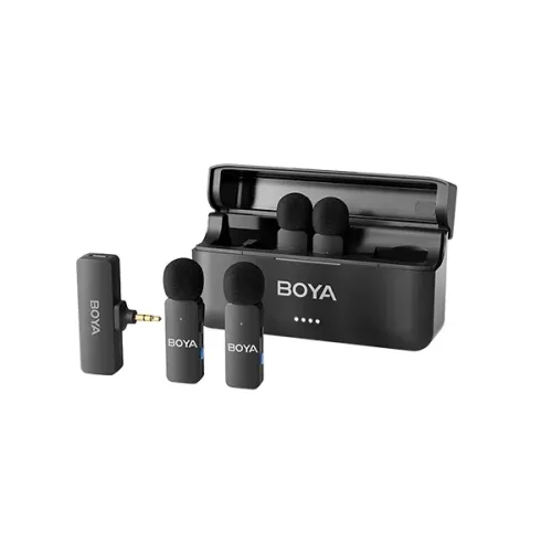 Experience professionalgrade audio with the BOYA BYV4 4Channel Mini Wireless Microphone, designed for content creators, mobile journalists, and professionals. This compact, highperformance audio solution supports up to four microphones simultaneously, ideal for interviews, vlogging, or live sessions. With a full 20 Hz to 20 kHz frequency range and 48 kHz / 16bit audio quality, it captures crystalclear sound in any environment. The builtin oneclick noise cancellation and included windshield ensure clear audio by reducing background disturbances. Its reliable wireless connection boasts a transmission range of up to 200 meters in open space, with ultralow latency of 2030 ms for realtime performance. Each microphone transmitter is ultralight at 10.5g and offers 6 hours of battery life, while the compact charging case extends usage to 18 hours with its 1500 mAh builtin battery. The microphone system uses durable silicon microphones, and the 360° rotatable clip offers flexible placement options. Measuring 62.6 × 18.3 × 10.2 mm for the transmitters and 143.6 × 80.5 × 35.5 mm for the charging case (weighing 160g), it’s highly portable and userfriendly, featuring intuitive controls through physical buttons. The plugandplay 3.5mm TRS receiver makes it instantly compatible with smartphones, audio recorders, and more. Perfect for those seeking highquality audio, portability, and convenience.
