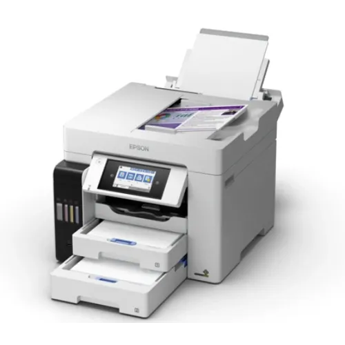 Experience highperformance business printing with the Epson EcoTank L6580 WiFi Duplex Multifunction ADF InkTank Printer, designed to minimize your total cost of ownership while maximizing productivity. This allinone printer offers fast print speeds, a high page yield of up to 7,500 pages in black and 6,000 pages in color, and utilizes pigment ink for sharp, crisp, and waterresistant prints.