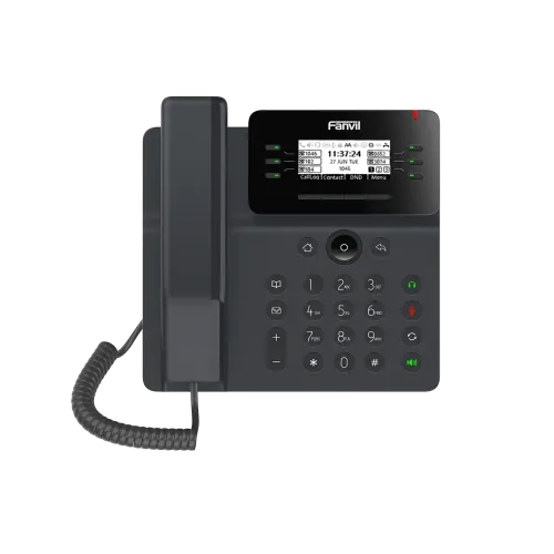 The Fanvil V62 IP Phone is designed to enhance your business communication experience. Its sleek black design, coupled with a sturdy foot stand and wall mounting option, makes it a perfect fit for any office environment. As a musthave accessory for modern businesses, the V62 provides a durable build, premium design, and best performance.
