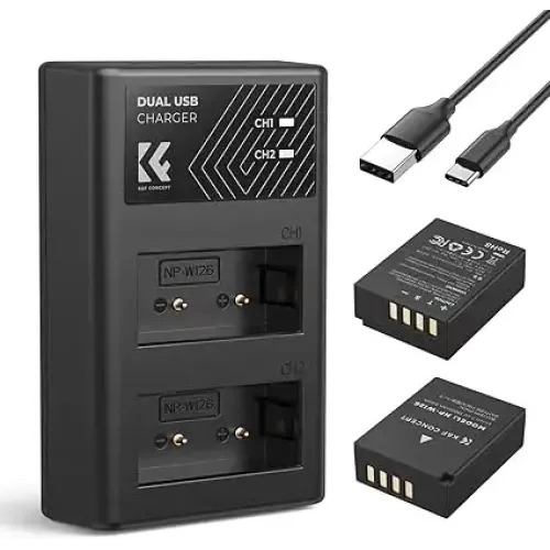 Never let a dead battery ruin the perfect shot. The K&F Concept NPW126 Dual Battery & Dual Slot Charger delivers highquality, bestperformance power for every Fujifilm moment. Two premium 1300 mAh cells are 100 % decodedno error messages, just seamless shooting on your X100V, XS10, XT30 and more. Slide both batteries into the compact dualslot charger and wake up to a full charge in only 2.5 hours. Overcharge, shortcircuit and overtemperature shields give you durable build reliability, while MicroUSB & TypeC inputs let you topup from wall bricks, power banks or car chargers anywhere in Bangladesh. Tough yet lightweight, the set slips into any bag and travels safely thanks to included contact caps. For creators who demand premium design, uninterrupted power and prolevel value, this musthave accessory fits your needs perfectly.