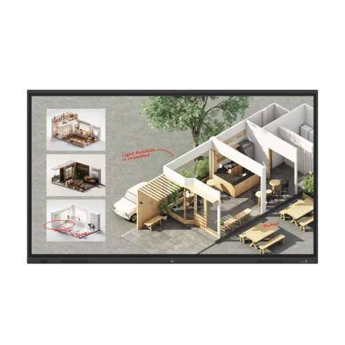 The LG 86TR3DQ Interactive Flat Panel features advanced interactivity with 50point multitouch capability, 5ms touch response, ±1mm precision, and antiglare 3.2mm tempered glass, making it perfect for smooth writing and collaboration.