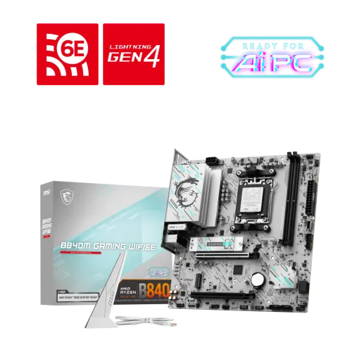 Experience toptier performance and modern features with the MSI B840M GAMING WIFI6E AM5 mATX Motherboard. This powerful motherboard supports the latest AMD Ryzen 9000, 8000, and 7000 Series Desktop Processors, utilizing the advanced AM5 socket and AMD B840 chipset for high compatibility and strong system performance.