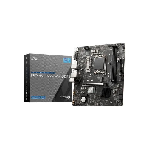 Build smart, spend lesspower your next rig with the MSI PRO H610MG WIFI DDR4 motherboard, the bestperformance mATX board for Bangladeshi gamers, students, and homeoffice pros. Engineered around the durable Intel H610 chipset, this highquality MSI WiFi motherboard unlocks 12th13th14th Gen Intel CPUs and delivers premium design stability through MSI Core & Memory Boost, so every taskfrom online classes to 4K streamingruns silky smooth.