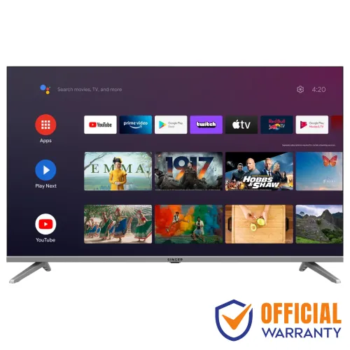 Experience the future of entertainment with the SINGER S32 SLE32E3AGOTV 32 Inch HD Android Google TV. This cuttingedge television combines a sleek, frameless design with the latest technology to bring you an unparalleled viewing experience. With its 32inch HD display and Android 11 operating system, you gain access to a vast library of apps and services from the Google Play Store, including popular streaming platforms like Netflix, YouTube, and Amazon Prime Video.