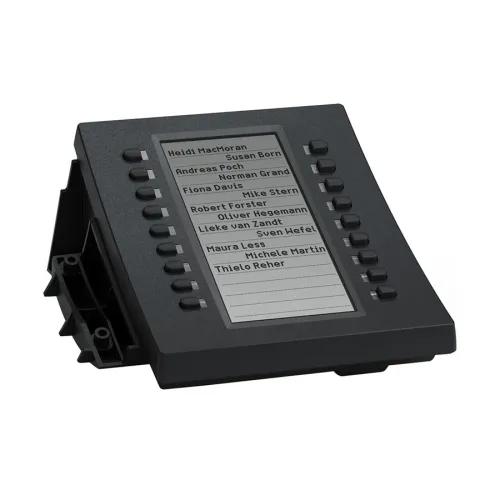 Elevate your communication experience with the Snom D3 Extension Module, expertly designed for seamless integration with SNOM D3xx Series IP phones. This cuttingedge module boasts a highcontrast TFT monochrome LCD, ensuring optimal visibility in any lighting condition. With 18 freely programmable keys, each accompanied by colored LED indicators, you’ll enjoy instant visual feedback for call status, busy lamp fields (BLF), speed dial, and custom functions.